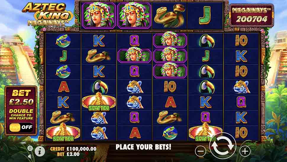 Play Aztec King Megaways free online by Pragmatic Play. Video slot with a mexico theme and 96.58% RTP. Demo play in your browser.