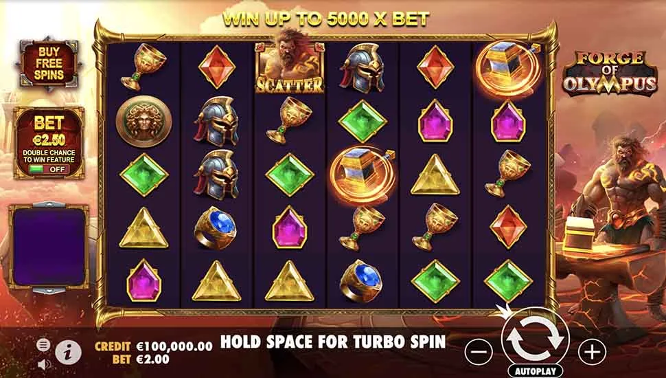 Forge of Olympus is a video slots by Pragmatic Play. The game comes with high volatility and an RTP of 96.25%. Free Spins are available in the game feature set. No standalone bonus game is listed. This title does not list a progressive jackpot.