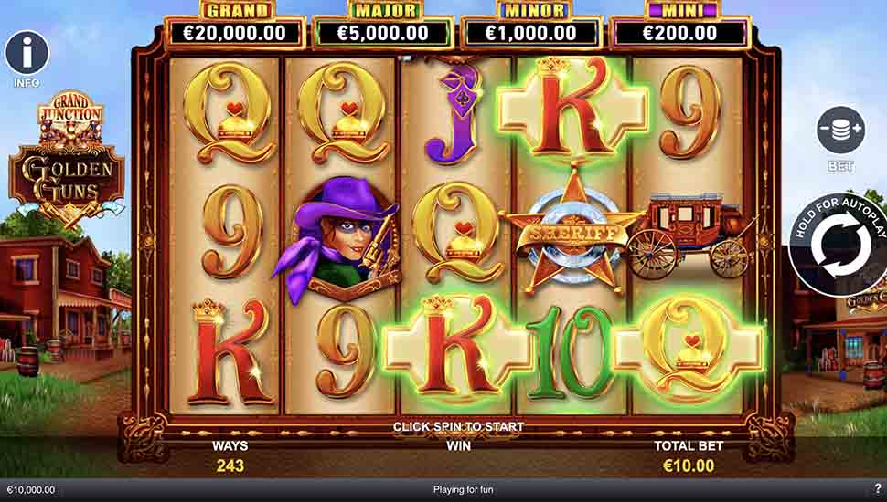 Play Grand Junction Golden Guns free online by Playtech. Enjoy this video slot with 96.40% RTP plus free spins and a bonus round. Instant demo play in your b...