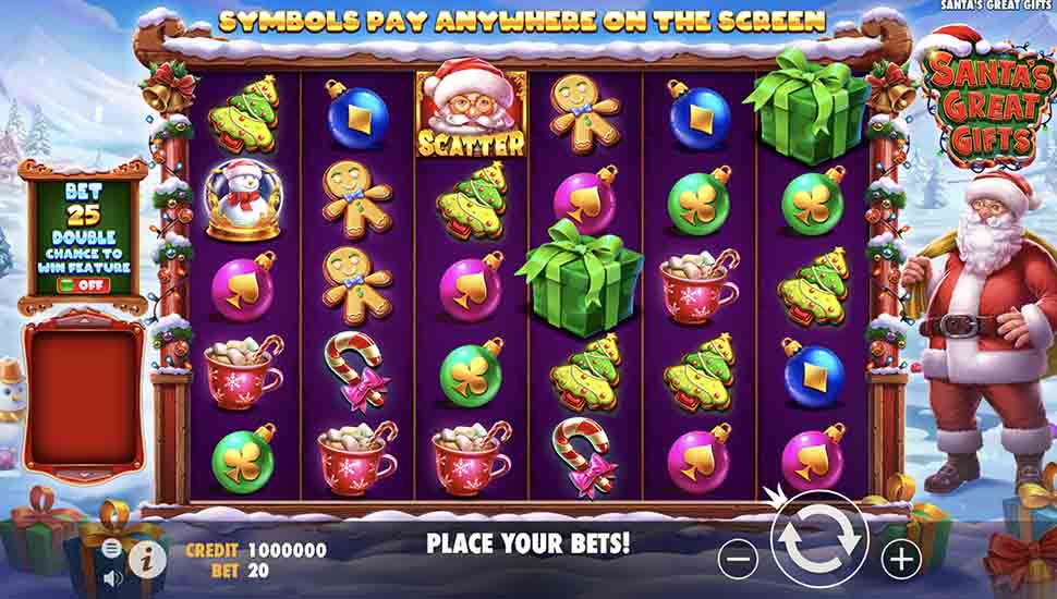 Santa's Great Gifts is a video slots by Pragmatic Play. The game comes with high volatility and an RTP of 96.25%. Free Spins are available in the game feature set. No standalone bonus game is listed. This title does not list a progressive jackpot.
